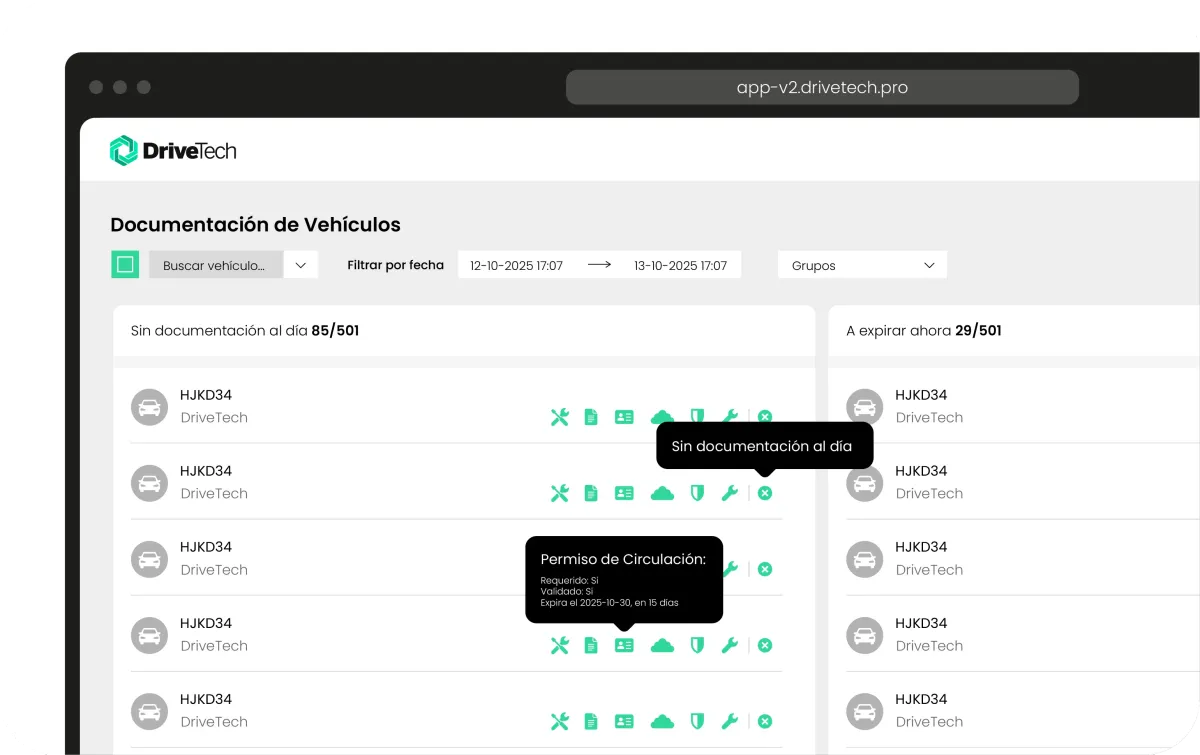 Toda la documentación de conductores, vehículos y grupos, centralizada en una sola plataforma de fácil acceso.