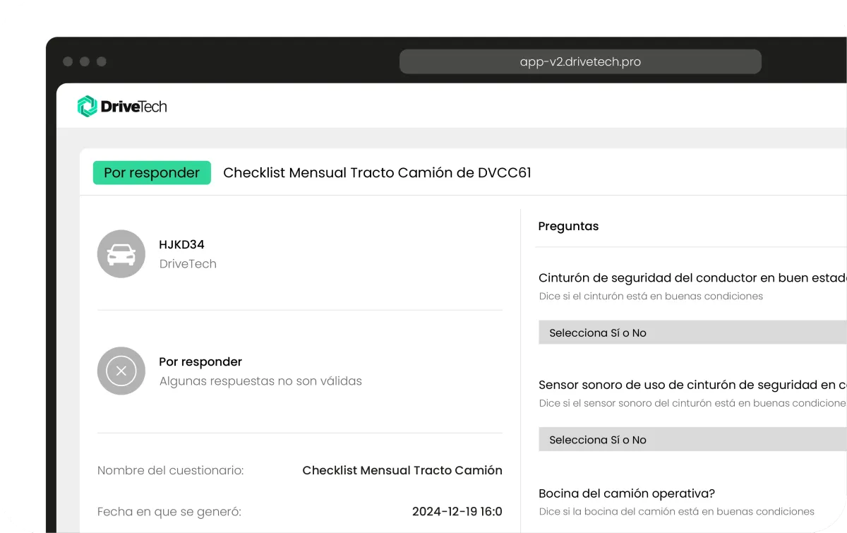 Configura checklists digitales (de seguridad, estado del vehículo u otro) que los conductores deban completar cuando sea pertinente para asegurar que el vehículo esté siempre en condiciones óptimas.