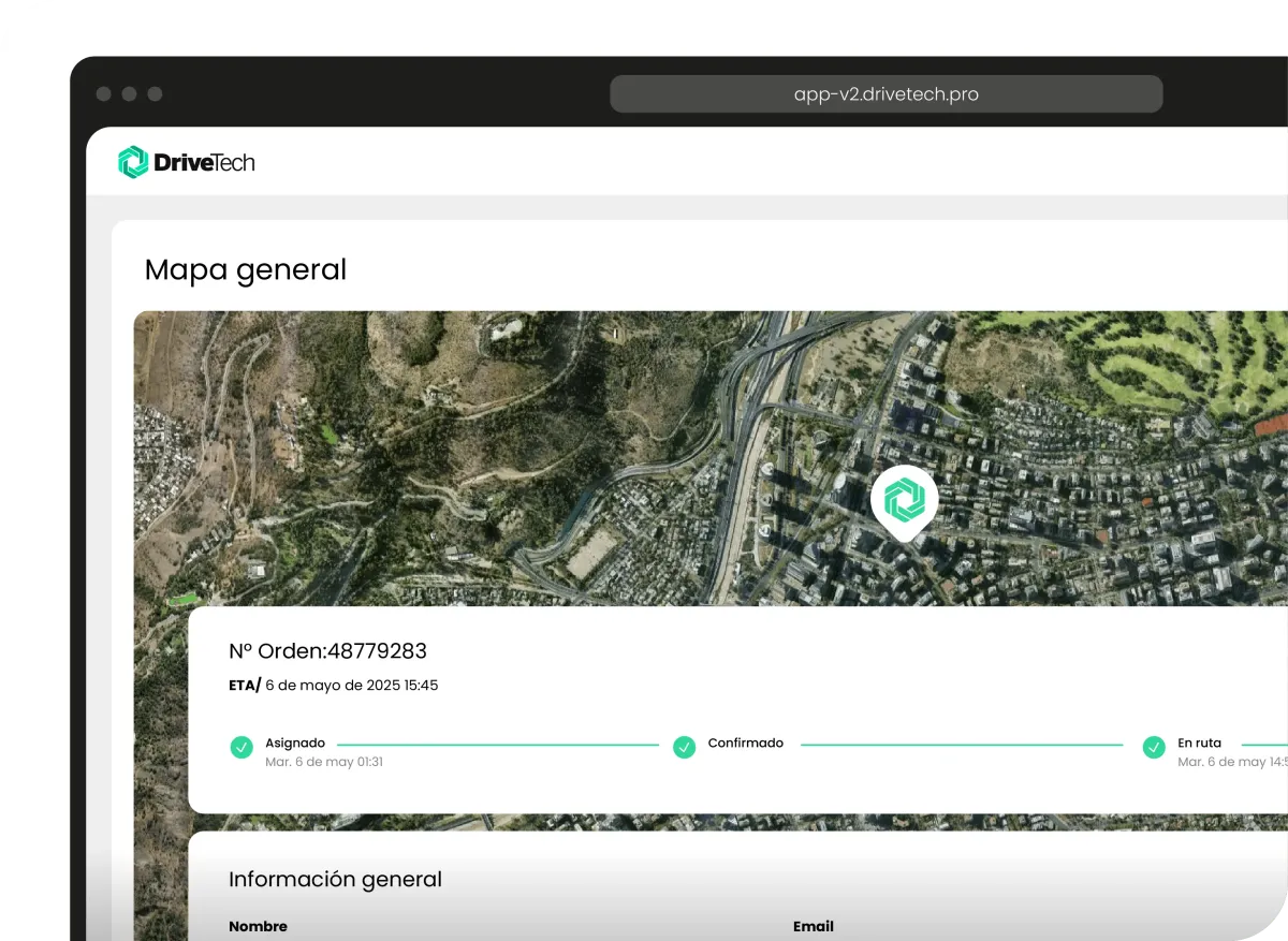 Seguimiento para el cliente final: Tus clientes reciben un enlace para seguir el pedido en tiempo real y saber exactamente cuándo llegará. Mayor confianza, menos reclamos