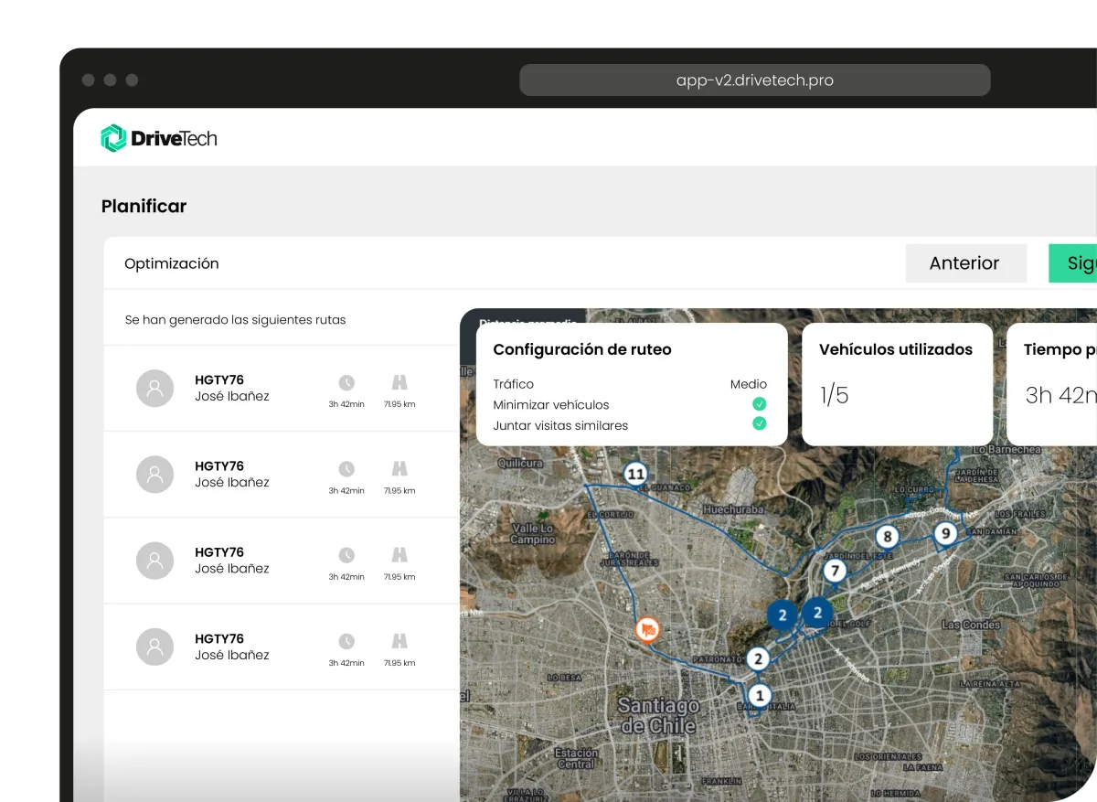Al optimizar tu reparto, abres la puerta a una logística más inteligente. Esta solución se integra fácilmente con otros módulos DriveTech como Seguridad Patrimonial, para proteger cargas de alto valor o GDD, para asegurar el cumplimiento normativo de tu flota.