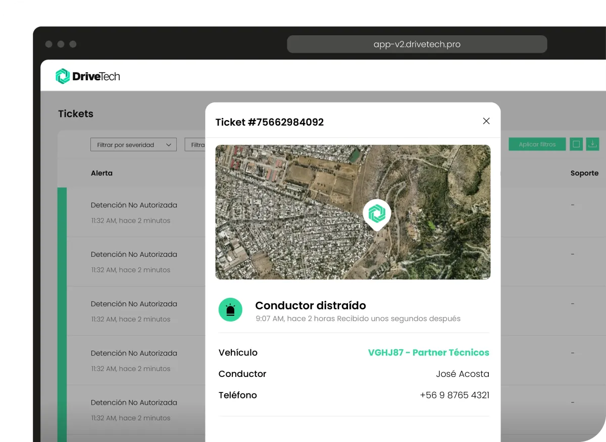 Reportes detallados y mapas de calor: Visualiza zonas con mayor concentración de eventos, como excesos de velocidad, desvíos o detenciones. Identifica patrones y toma decisiones preventivas basadas en datos